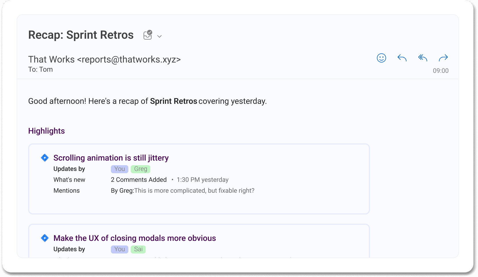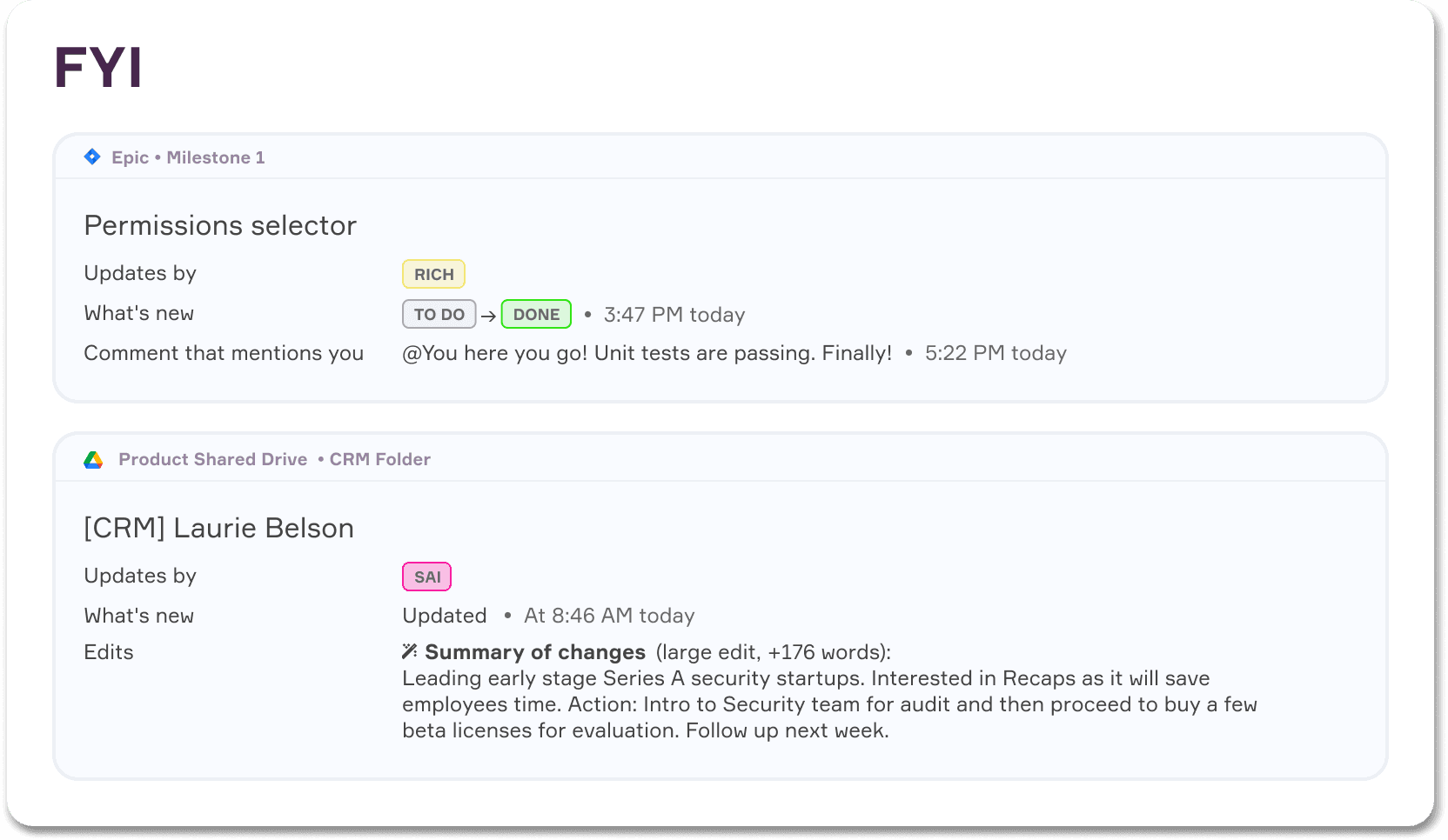 Keep up with work and get Recaps automatically delivered to your Inbox, Slack or Browser at whatever cadence you prefer.